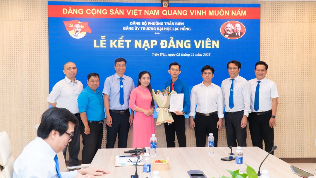 Thực hiện Nghị quyết của Đảng ủy Trường Đại học Lạc Hồng về công tác phát triển đảng viên, được sự đồng ý của Đảng ủy phường Trấn Biên, ngày 05 tháng 11 năm 2025, Chi bộ 5 – Đảng bộ Trường Đại học Lạc Hồng đã long trọng tổ chức Lễ kết nạp đảng viên mới cho đồng chí Nguyễn Thanh Phú, sinh viên Khoa Cơ điện – Điện tử.