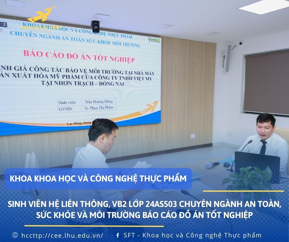 Khoa Khoa học và Công nghệ thực phẩm tổ chức báo cáo đồ án tốt nghiệp cho sinh viên lớp 24AS503, chuyên ngành An toàn, Sức khỏe và Môi trường