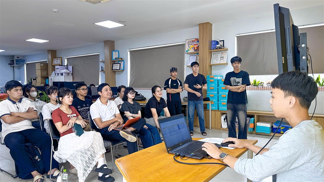 Sinh viên báo cáo bài tập cuối kỳ theo hình thức làm việc nhóm dưới sự hướng dẫn của thầy Nguyễn Minh Sơn.