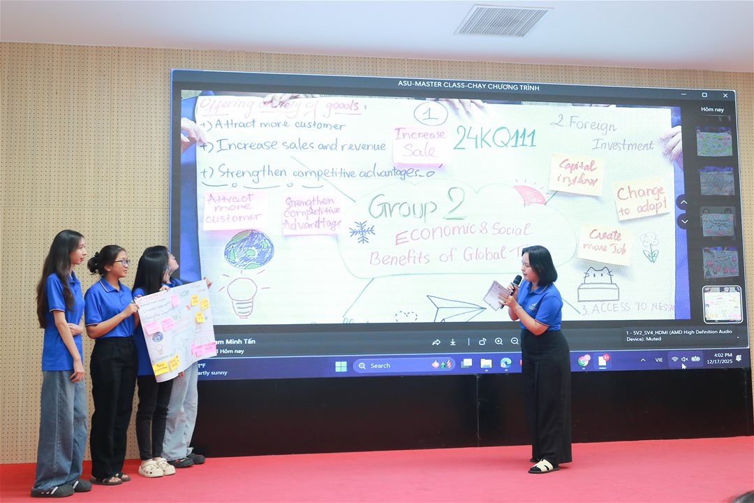 Với sinh viên Kinh doanh quốc tế: Bức tranh tổng thể về các dòng chảy kinh tế và xu hướng thị trường hiện đại đã được các bạn phân tích sắc sảo, từ đó rút ra bài học về chiến lược quản trị.