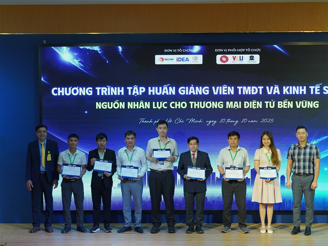 Ngày 10/10/2025, 03 giảng viên đại diện Ngành Thương mại điện tử, Khoa Công nghệ thông tin – Trường Đại học Lạc Hồng (LHU) đã tham dự Chương trình Tập huấn Giảng viên Thương mại điện tử & Kinh tế số năm 2025, do Hiệp hội Thương mại điện tử Việt Nam (VECOM) phối hợp cùng Trường Đại học Gia Định (GDU) tổ chức tại TP. Hồ Chí Minh.