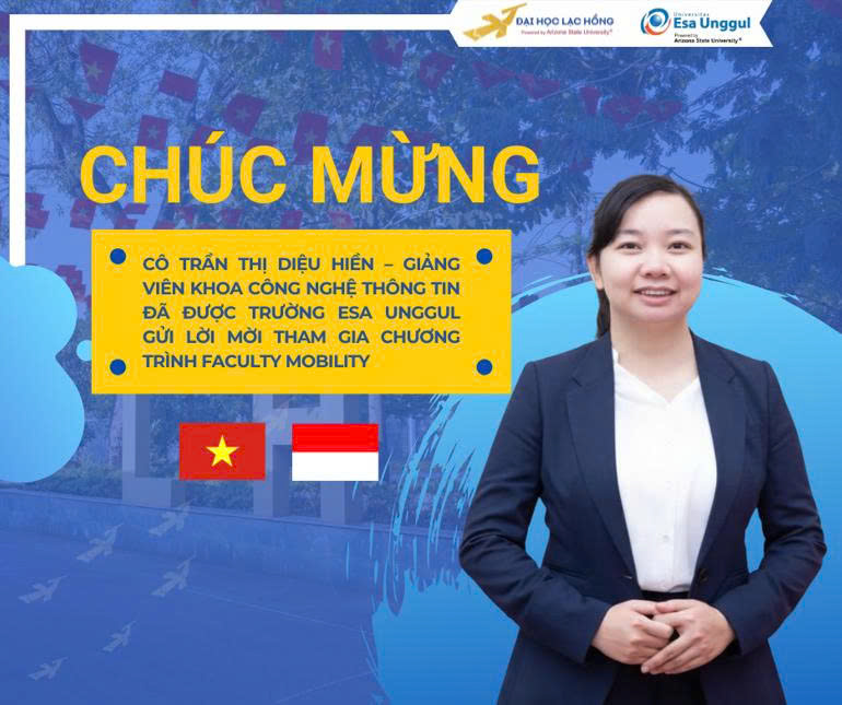 Trường Đại học Lạc Hồng tiếp tục ghi dấu ấn trên hành trình hội nhập quốc tế với tin vui từ Khoa Công nghệ Thông tin. Cô Trần Thị Diệu Hiền, giảng viên của khoa, đã được Trường ESA Unggul (Indonesia) chấp thuận hồ sơ và gửi lời mời tham gia chương trình Faculty Mobility. Đây là một trong những hoạt động hợp tác học thuật uy tín dành cho đội ngũ giảng viên các trường đại học toàn cầu.