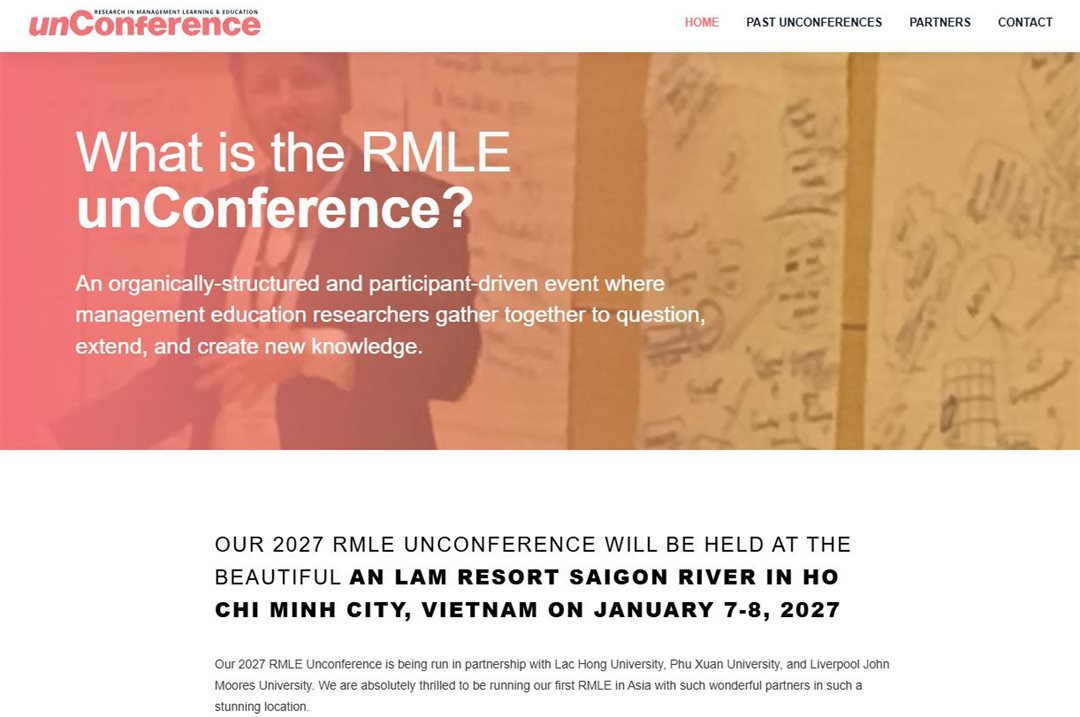 Các nhà nghiên cứu, giảng viên và học giả quan tâm đến giáo dục quản trị được mời tham gia RMLE Unconference 2027, diễn ra ngày 7–8/01/2027 tại An Lam Retreat Saigon River, TP.HCM (Việt Nam).